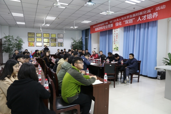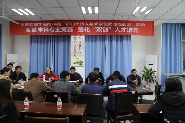 3月19日晚上7:00,电气学院承办的“重庆文理学院部门负责人与大学生面对面交流(第73期)”活动在格术楼-C301隆重举行。学院领导班子、党政办、教学办、学工办老师、学科竞赛指导教师、学生参加竞赛获奖代表及学院创新实验室学生共50余人参加了交流,活动由学院党总支副书记梁康有主持。与会师生围绕“砺炼学科专业竞赛,强化‘双创’人才培养”这一主题展开了深入交流。