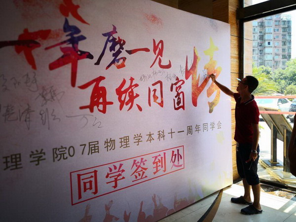 7月21-22日,明升体育88物理学专业2003级校友相聚母校,举行了“十一年磨一见·再叙同窗情”毕业11周年同学会。并于21日下午在红河B区格术楼C301会议室举行了主题班会和师生座谈会,学院党总支书记、执行院长石东平,副院长夏继宏,党政办主任曾令刚、校友分会秘书长何玲玲、原辅导员周虹君及原任课教师近40人参加聚会。