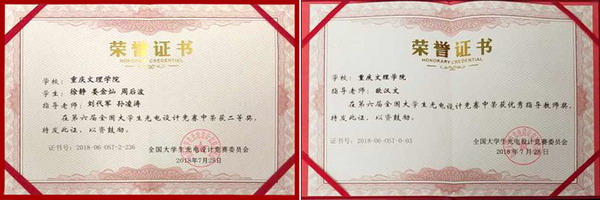 7月26日至28日,第六届全国大学生光电设计竞赛在北京理工大学中关村校区举行。我校学子在大赛上表现突出,成绩优异,由电子电气工程学院教师欧汉文指导,詹金坤、吕春年、陈爽3位同学组成的“智电科技队”在竞技车组比赛中荣获一等奖,欧汉文老师荣获优秀指导老师奖。此外,由新材料技术研究院刘代军、孙凌涛老师指导,明升体育88徐静、娄金灿、周后波3位同学组成的团队在竞技车组比赛中荣获二等奖。此奖参赛荣获佳绩,是学校和学院对学生专业技能竞赛高度重视、指导教师悉心指导和全体参赛同学努力拼搏的结果。