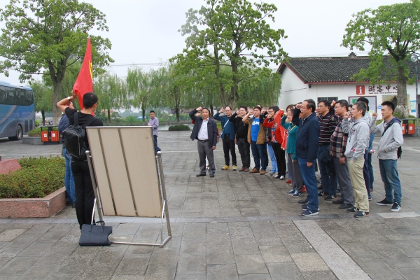 在激昂的气氛中,同志们在聂帅塑像前合影留念,并在党总支书记石东平的带领下,面对聂帅和党旗重温了入党誓词。