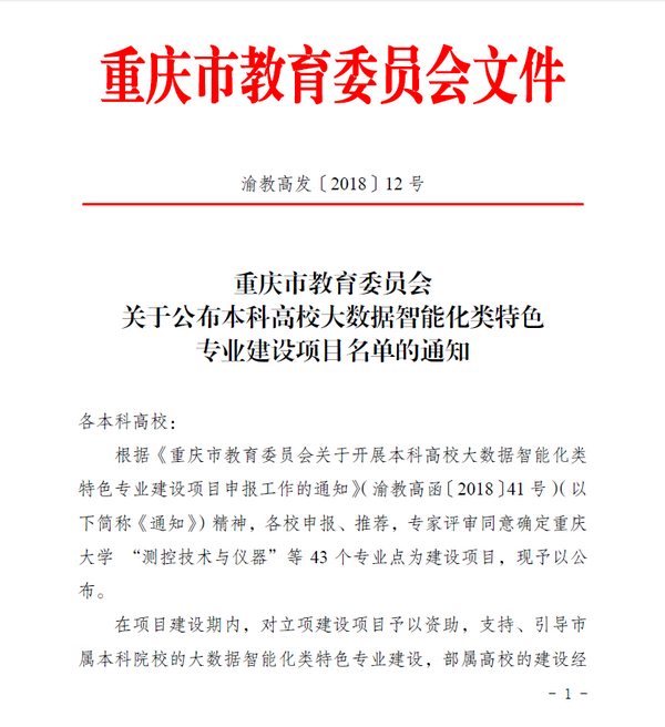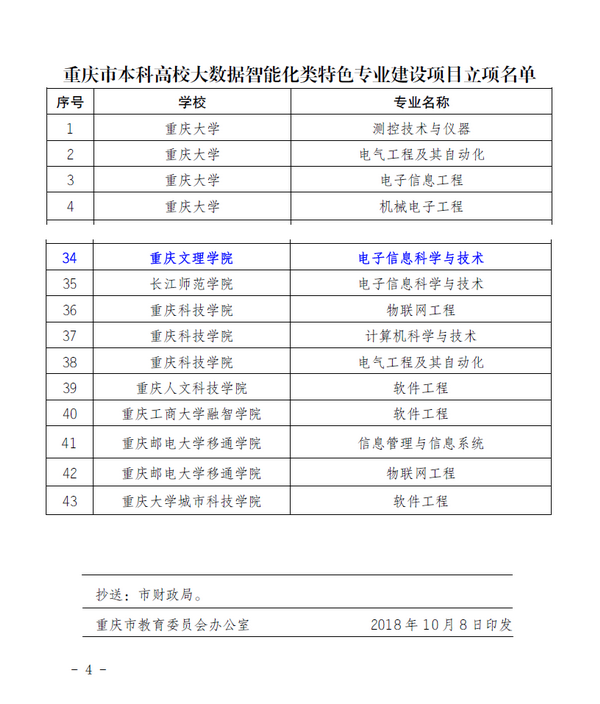 喜讯:明升体育88电子信息科学与技术专业获批重庆市大数据智能化类特色专业建设项目立项