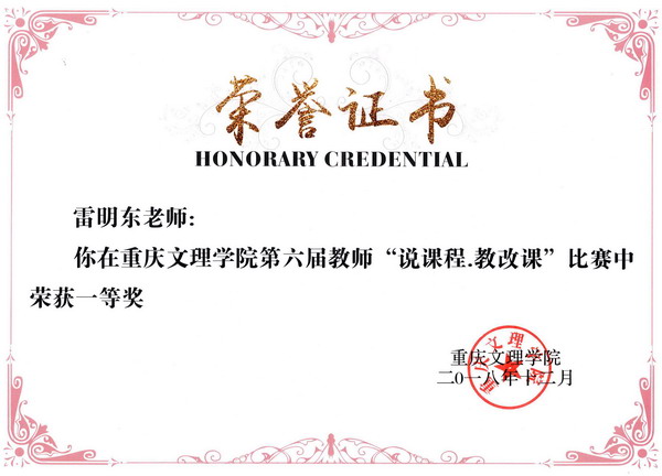 在近日结束的重庆文理学院第六届教师“说课程•教改课”比赛中,历经院内选拔赛、过程验证评价和决赛集中展示三个阶段之后,明升体育88教师雷明东、张滟获荣获一等奖,高君华荣获三等奖,学院获团体二等奖,取得了历史最佳成绩,是学院历来高度重视课堂教学质量与青年教师培养工作的直接体现。