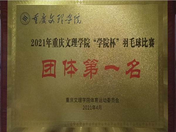 4月18日,在红河B区室内羽毛球馆,明升体育88羽毛球队在重庆文理学院“学院杯”羽毛球比赛中,力战强敌,斩获桂冠,荣获团体赛第一名。