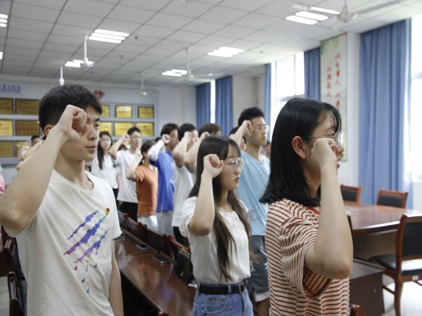 6月23日中午12:30,为庆祝建党100周年,明升体育88学生支部在格术楼C301举行了庄严而隆重的党员宣誓活动。学院党总支书记程正富、副书记梁康有、学生支部书记、支委和在校党员80余人参加了宣誓大会。