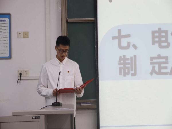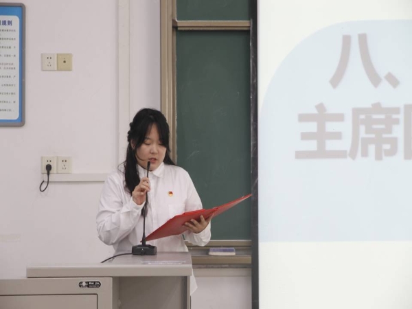 梁康有为新一届主席团成员颁发聘书并作大会总结,他希望两委会的成员们能够在新一届学生会的领导下,秉承不怕困难,勇于拼搏,努力奋斗的精神继续前进,使团学组织能够更进一步。