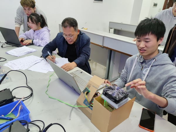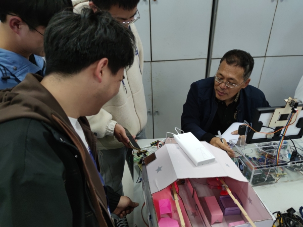 本次单片机设计竞赛设有一等奖一组、二等奖两组、三等奖三组,由杜西亮教授和志远电子兴趣社创新部组成的评审团进行打分。最后,由杜西亮教授为获奖同学进行颁奖,颁奖结束后,杜西亮教授鼓励大家:积极参与学科竞赛,多钻研、勤学习,为以后就业提前打好基础,为自己创造无限的未来。