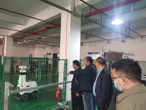 会谈交流前,王军陪同石东平一行参观了公司的智能巡检机器人、餐饮机器人、彩绘机器人的生产车间,工业机器人研发中心,3D打印设计工作室等。