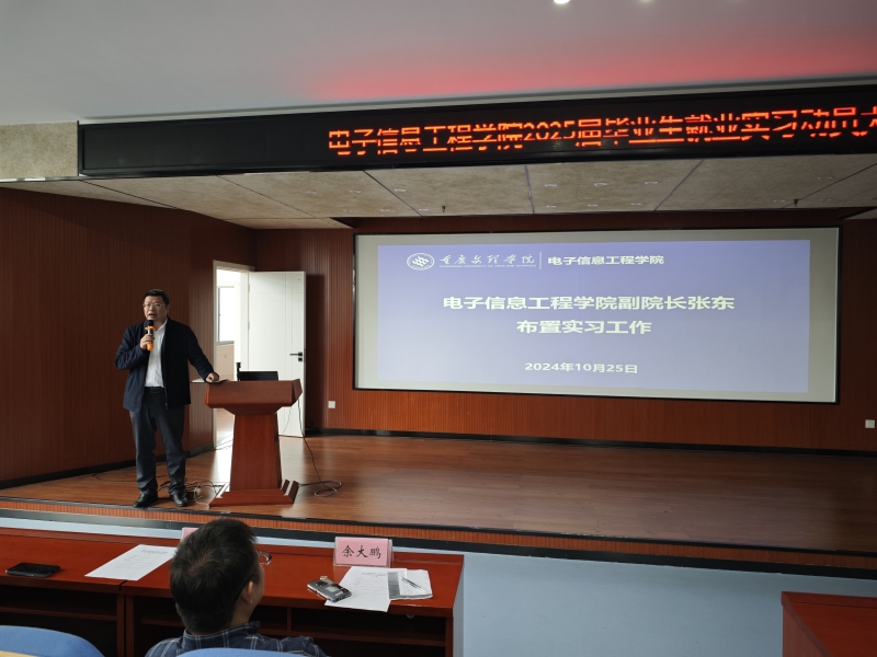 张东副院长对2025届实习工作进行了安排。他从电子信息类学生的人才培养实践环节,行业对人才的具体需求,学院的实习形式与实习安排等多方面进行了阐述。希望大家能够高度重视实习期间的学生人身安全和财产安全问题,高度珍惜实习机会,通过实践活动深化专业理论知识,为未来就业打下坚实基础。