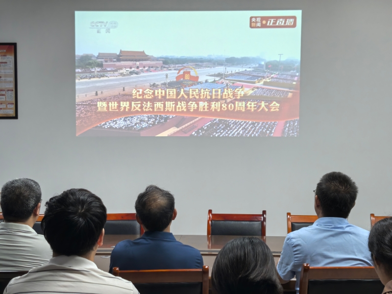 明升体育88组织教职工集中收看中国人民抗日战争暨世界反法西斯战争胜利80周年纪念大会