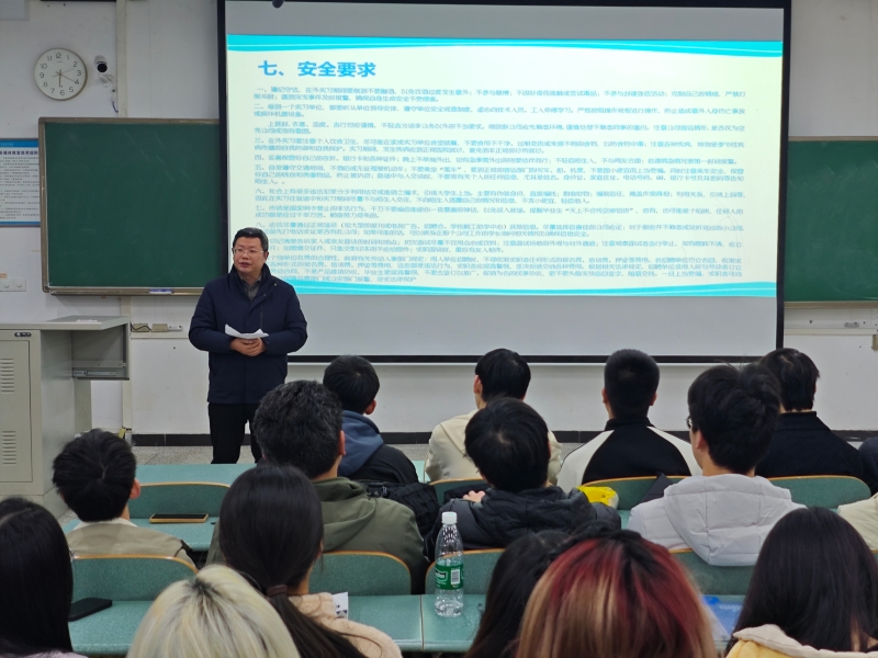 为确保实习工作安全有序开展,张东结合高校实习中易发的安全事故案例,围绕生产操作安全、交通出行安全、防火防盗防诈骗、食品卫生安全、网络安全以及防范传销和非法借贷等重点领域进行了讲解,详细说明了各类风险隐患的预防措施和应急处置方法。他叮嘱同学们务必树立“安全第一”的思想,严格遵守操作规程,提高自我保护能力。